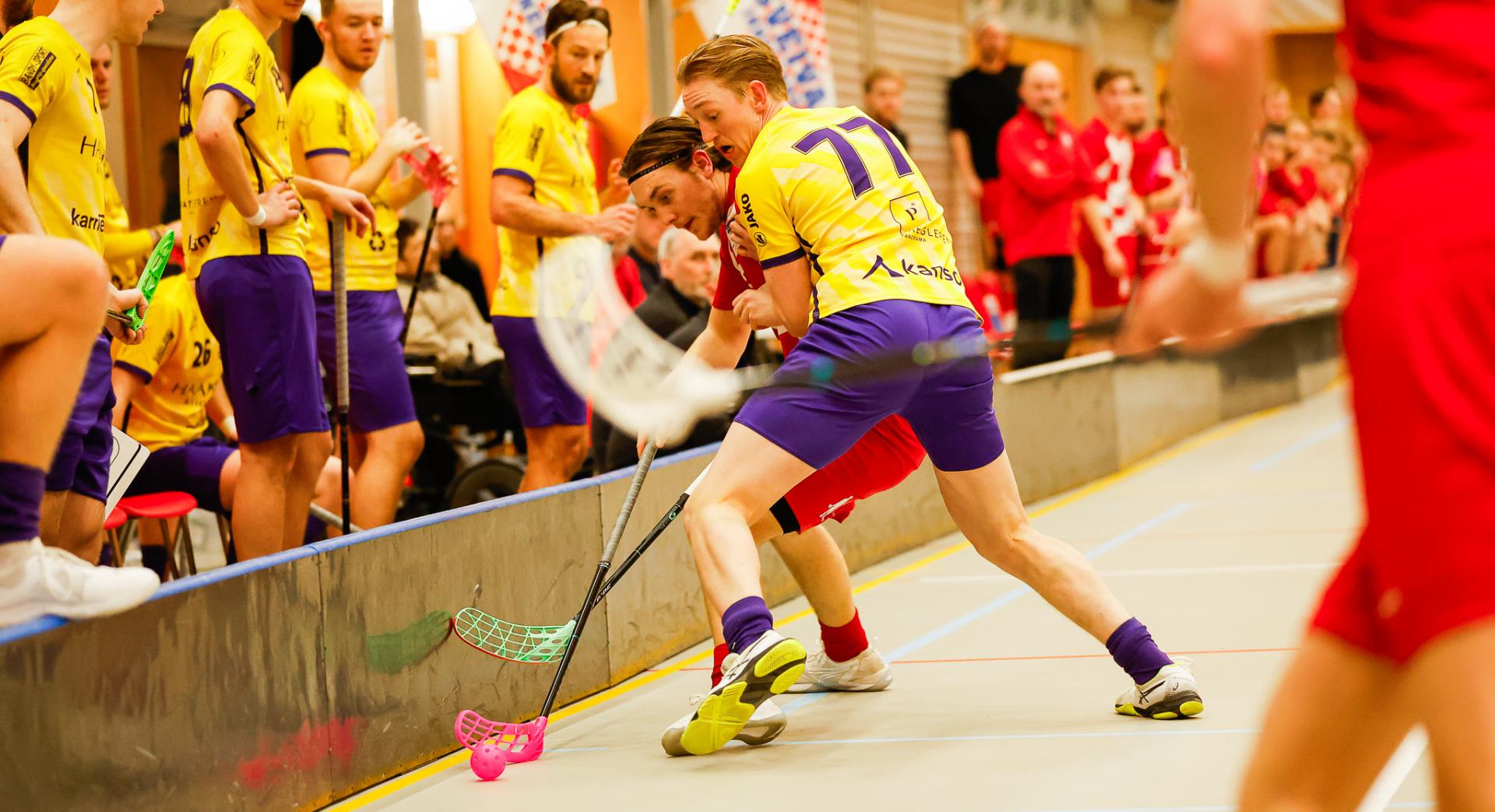 Det er alt annet enn hyggelig før kamp, og da lagene gjør sine forberedelser flyr noen Tunet-spillere over på Sveivas banehalvdel og det gir en del knuffing. Tenningsnivået er det med andre lite å sette fingeren på før kampen starter. Starten er avventende men rett over minuttet får Tunet straffeslag, og det setter Adrian Amdahl sikkert. Gjestene er klart best de første ti minuttene, og det er litt mot spillets gang da Sindre Bjerknes utligner til 1-1 halvminuttet før vi er halvveis. Under minuttet senere stikker Lukas Nordin av gårde og sender Sveiva til himmels. Tunet er litt rystet, og Sveiva er bedre med etter de to scoringene. Da kvarteret er spilt får Tunet et nytt straffeslag, men denne gang klarer ikke Amdahl å overliste hjemmelagets målvakt. Tunet utligner halvannet minutt senere, og det er Philip Laasonen som hamrer inn 2-2 etter et frislag. gleden blir kortvarig for seks sekunder senere er Nordin frempå igjen. Det ser ut til at Sveiva kan gå til pause med en ledelse, men da våkner Ole Mossin Olesen som sliter seg løs fra markeringen og scorer. Begge lag ligger i mann mann hele den første perioden, og det er nesten bare individuelle prestasjoner som låser opp.