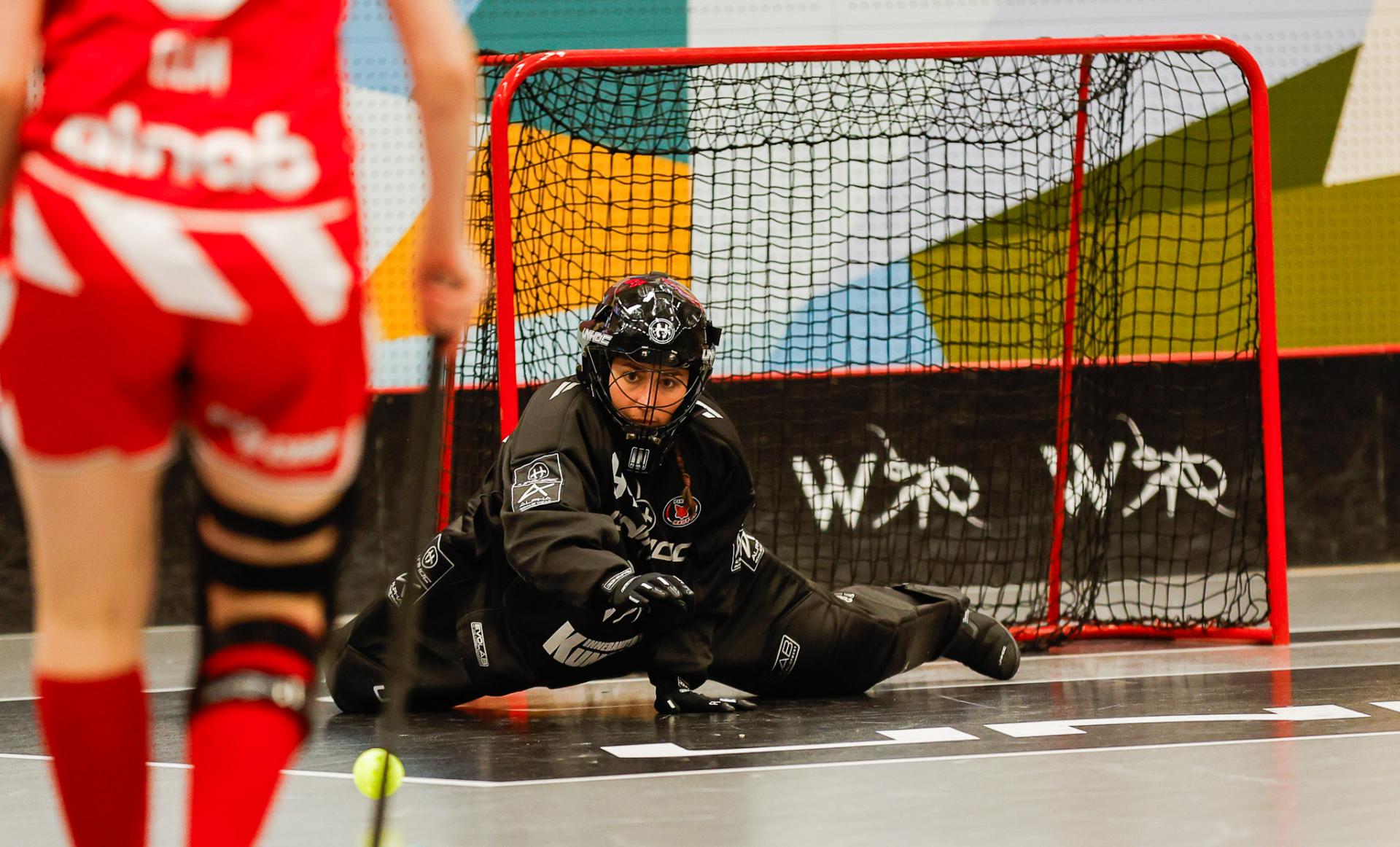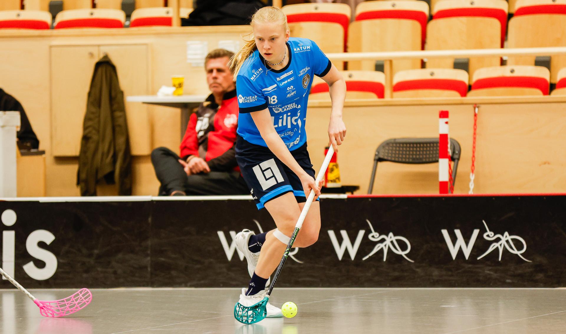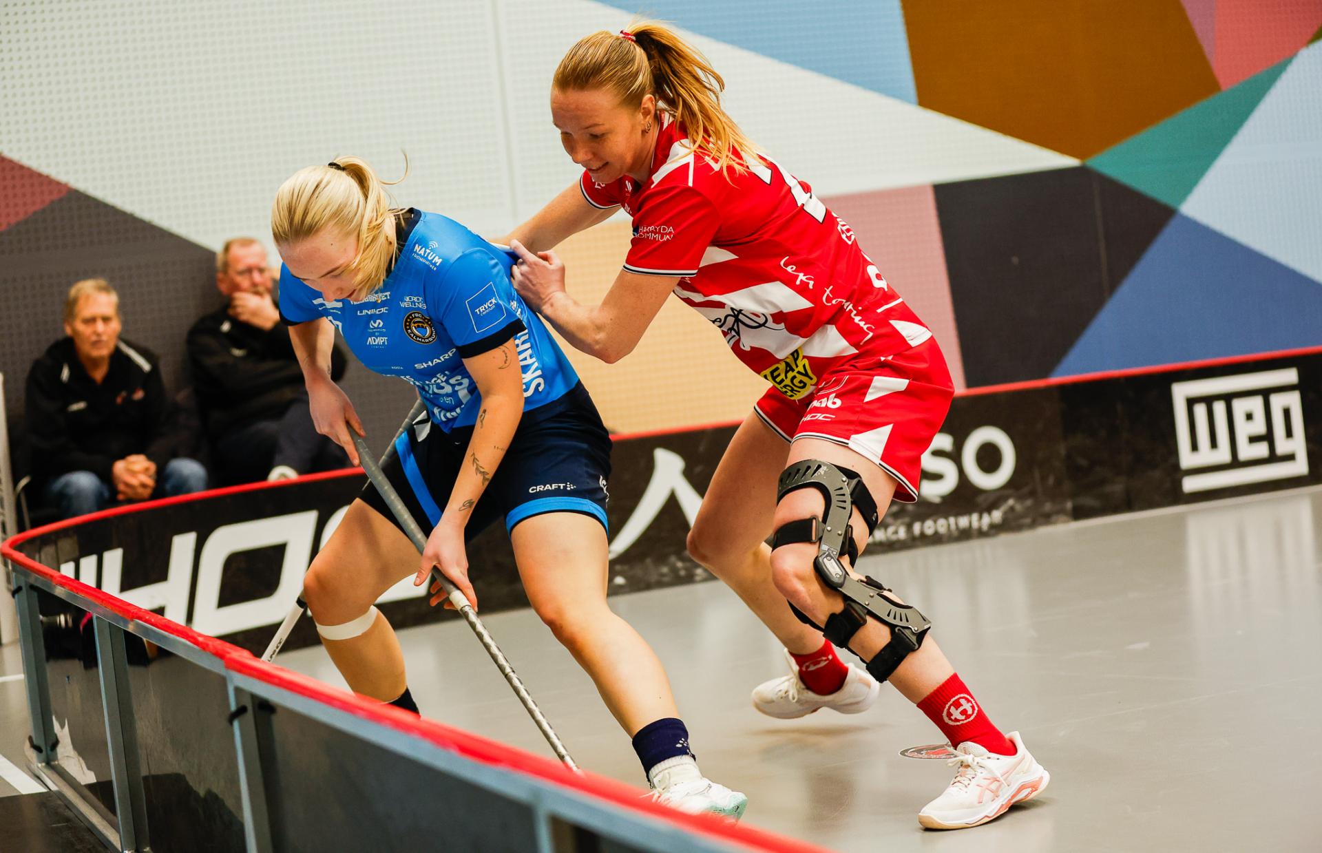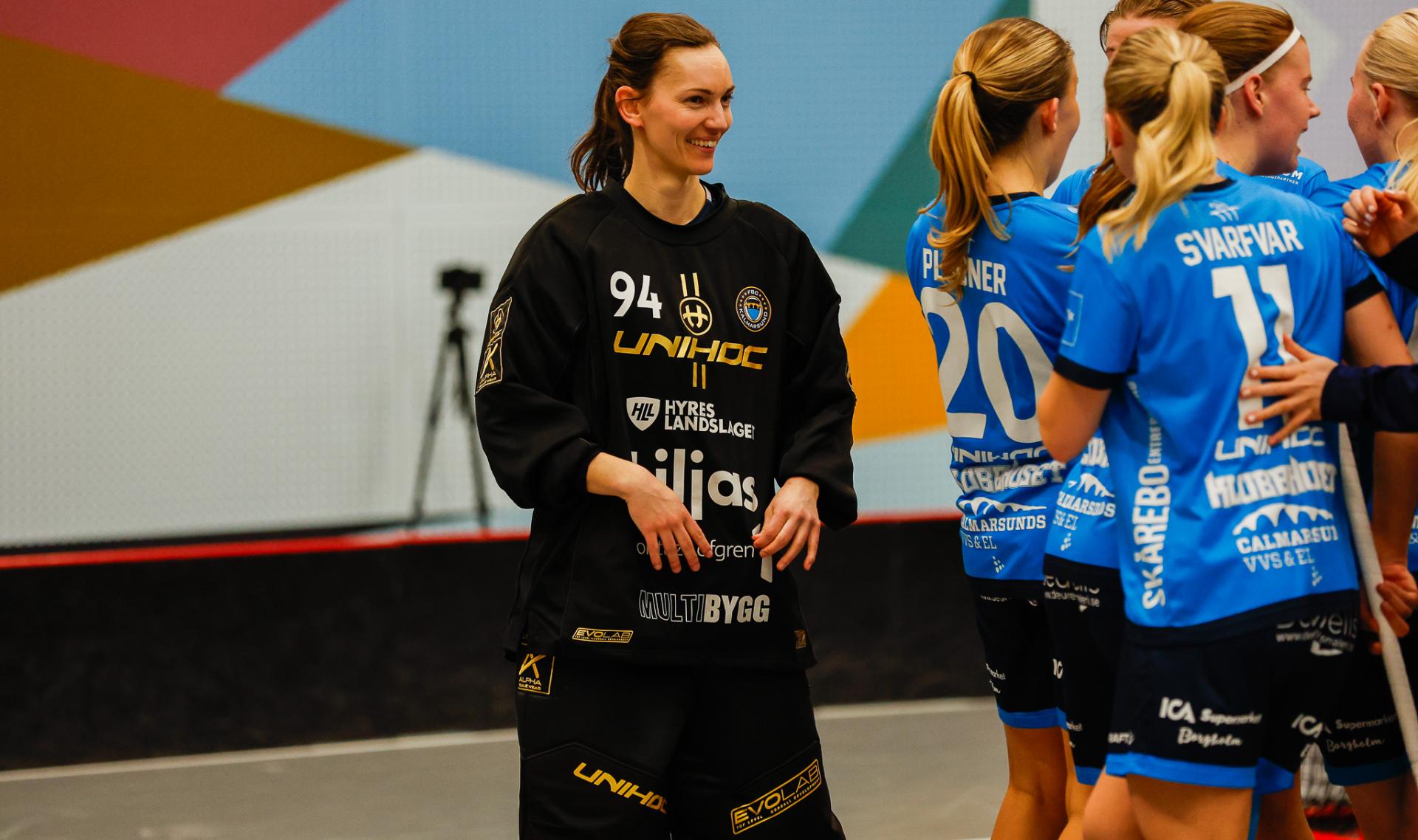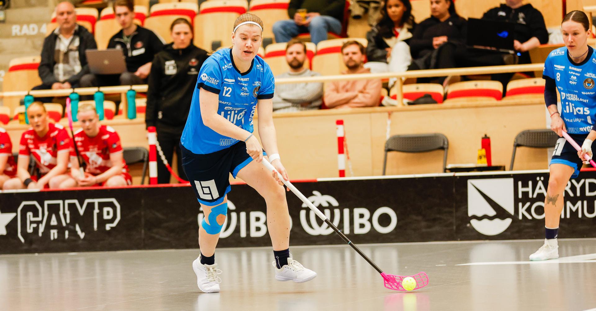 Det er en forrykende start på kampen av Kalmarsund mot Pixbo, og allerede etter fire minutter ligger den første ballen bak Lara Heini. På andre siden av banen har Thea Ekholt det ganske rolig i starten, men varter opp med noen gode redninger. Dominica Buczek dobler gjestenes ledelse i det syvende minutt med en frekk zorro, og det får fart på hjemmelaget, men uten at de klarer å overliste den norske keeperstjernen. Det er en herlig innebandykamp, der begge lag gir alt i duellene, men det er Kalmarsund som er best i den første perioden som de vinner.