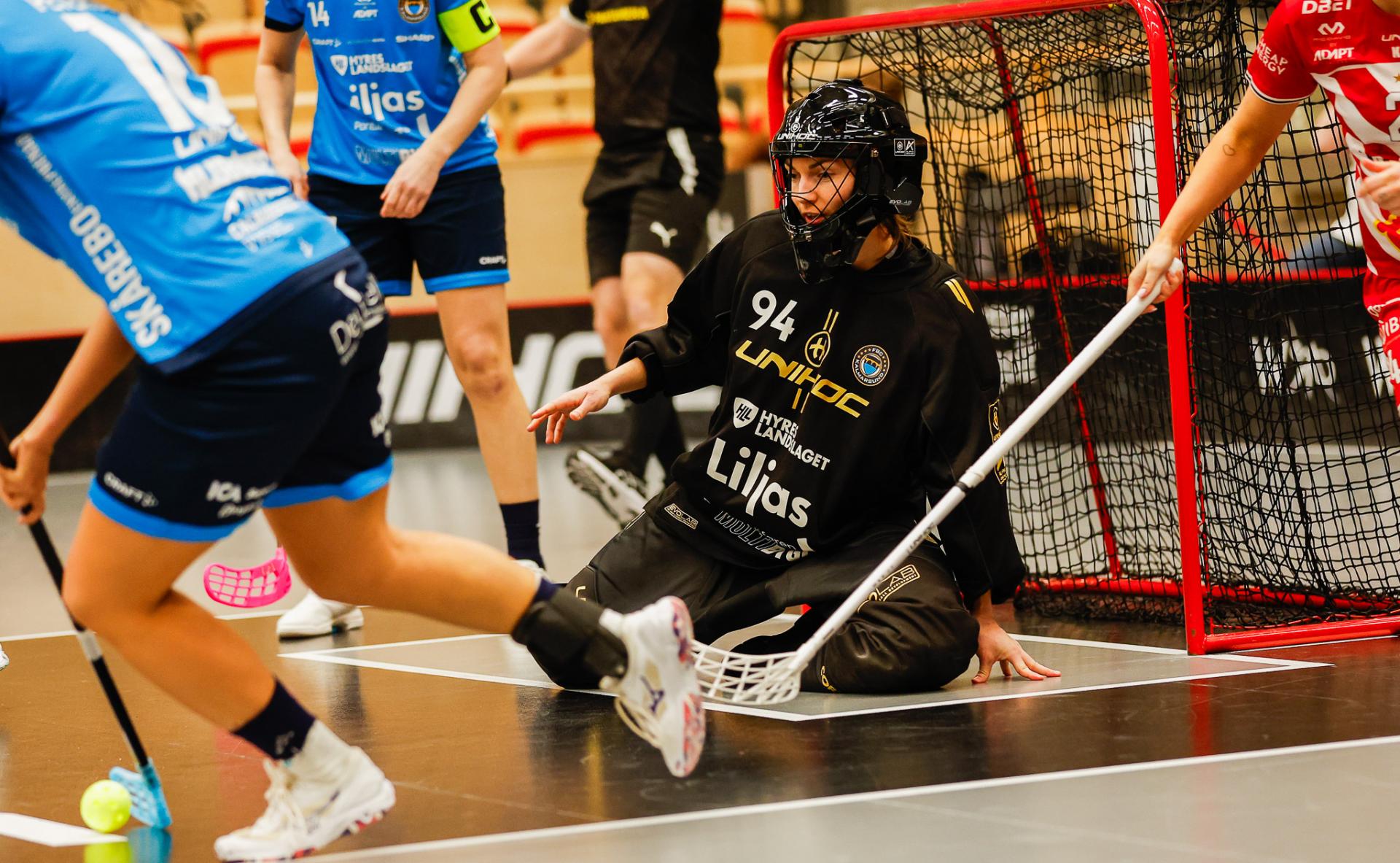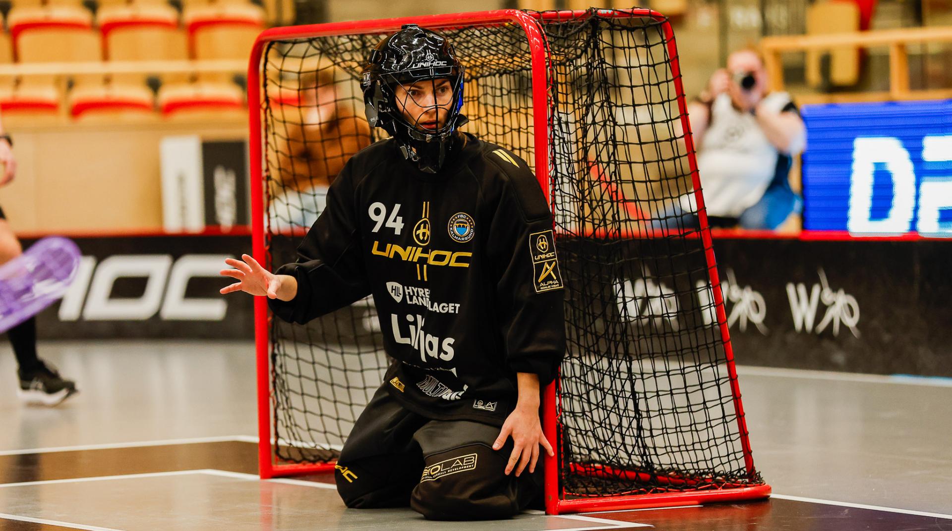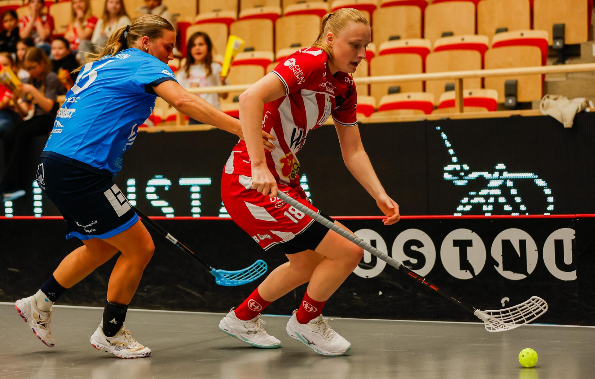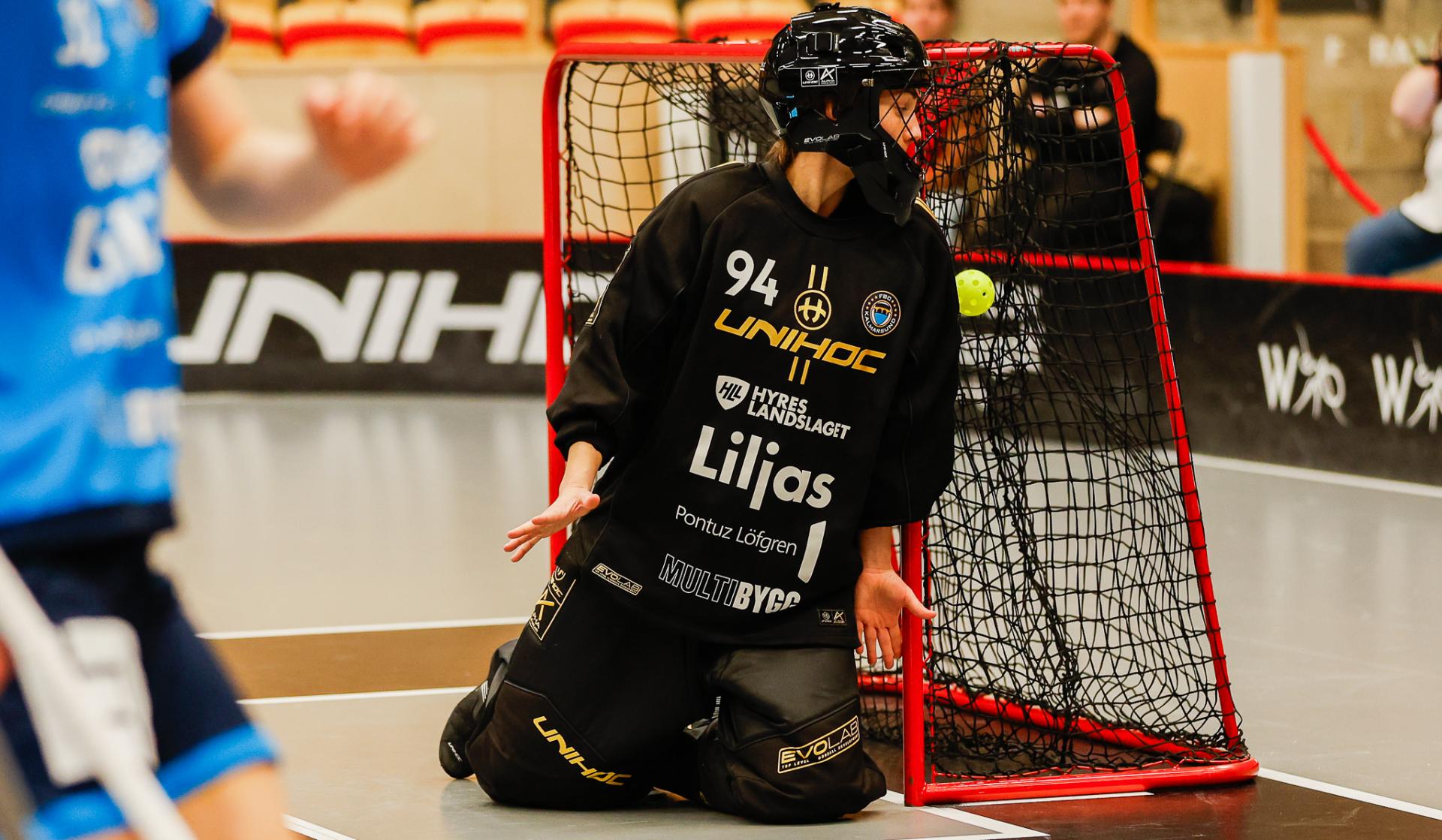 Det er en forrykende start på kampen av Kalmarsund mot Pixbo, og allerede etter fire minutter ligger den første ballen bak Lara Heini. På andre siden av banen har Thea Ekholt det ganske rolig i starten, men varter opp med noen gode redninger. Dominica Buczek dobler gjestenes ledelse i det syvende minutt med en frekk zorro, og det får fart på hjemmelaget, men uten at de klarer å overliste den norske keeperstjernen. Det er en herlig innebandykamp, der begge lag gir alt i duellene, men det er Kalmarsund som er best i den første perioden som de vinner.