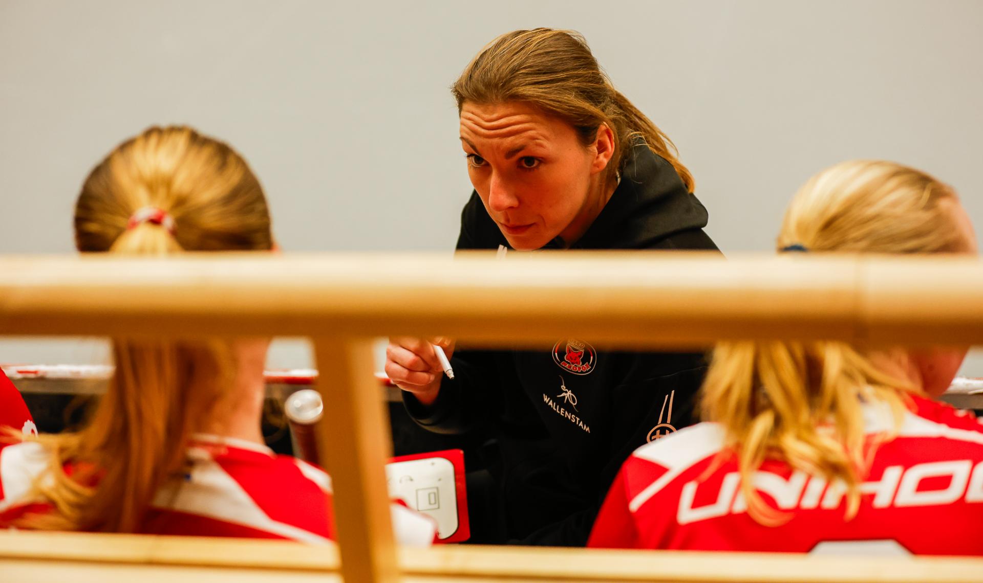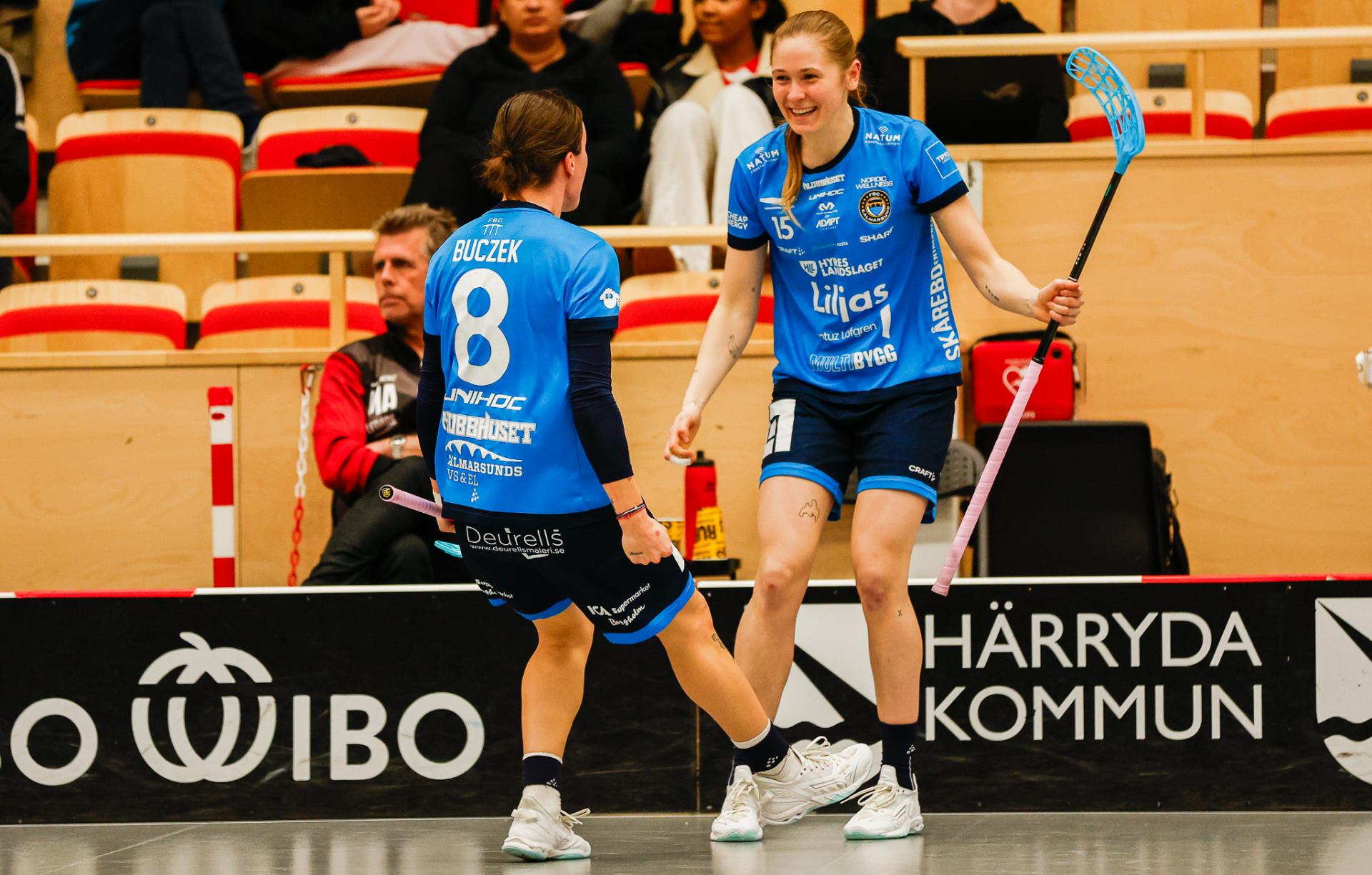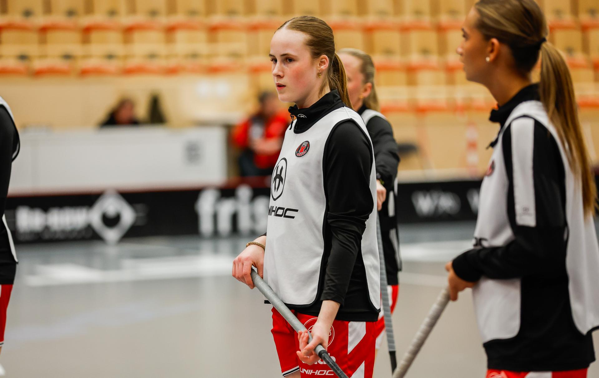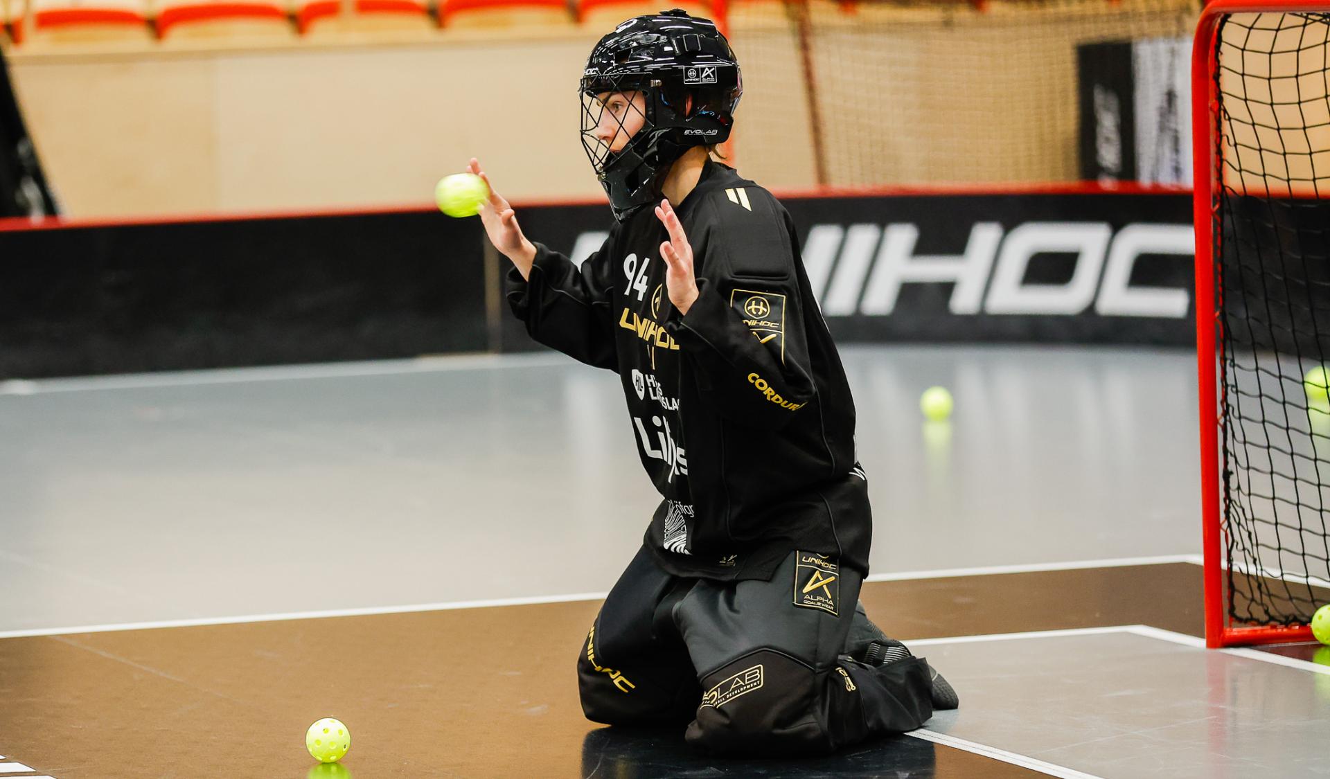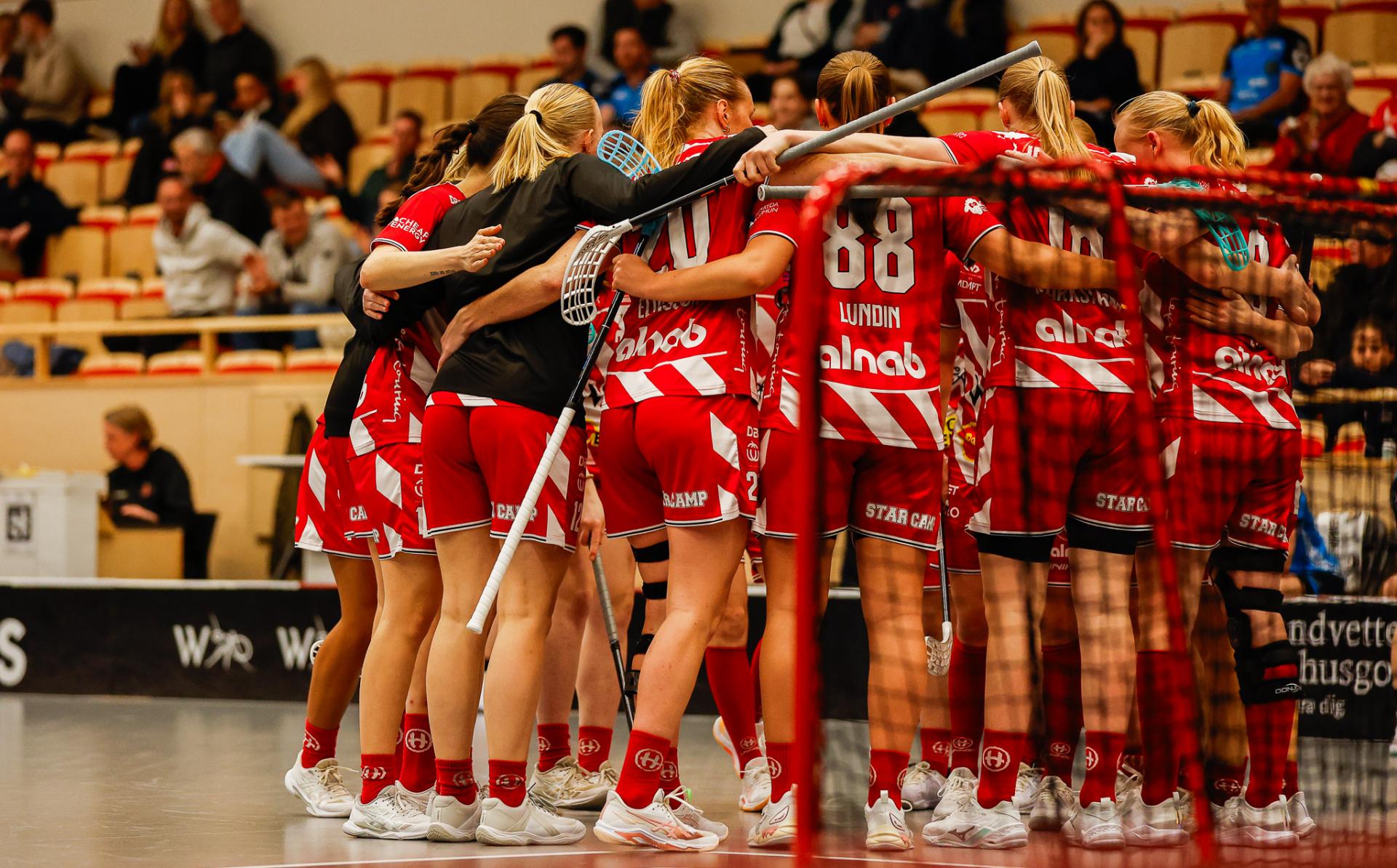 Det er en forrykende start på kampen av Kalmarsund mot Pixbo, og allerede etter fire minutter ligger den første ballen bak Lara Heini. På andre siden av banen har Thea Ekholt det ganske rolig i starten, men varter opp med noen gode redninger. Dominica Buczek dobler gjestenes ledelse i det syvende minutt med en frekk zorro, og det får fart på hjemmelaget, men uten at de klarer å overliste den norske keeperstjernen. Det er en herlig innebandykamp, der begge lag gir alt i duellene, men det er Kalmarsund som er best i den første perioden som de vinner.