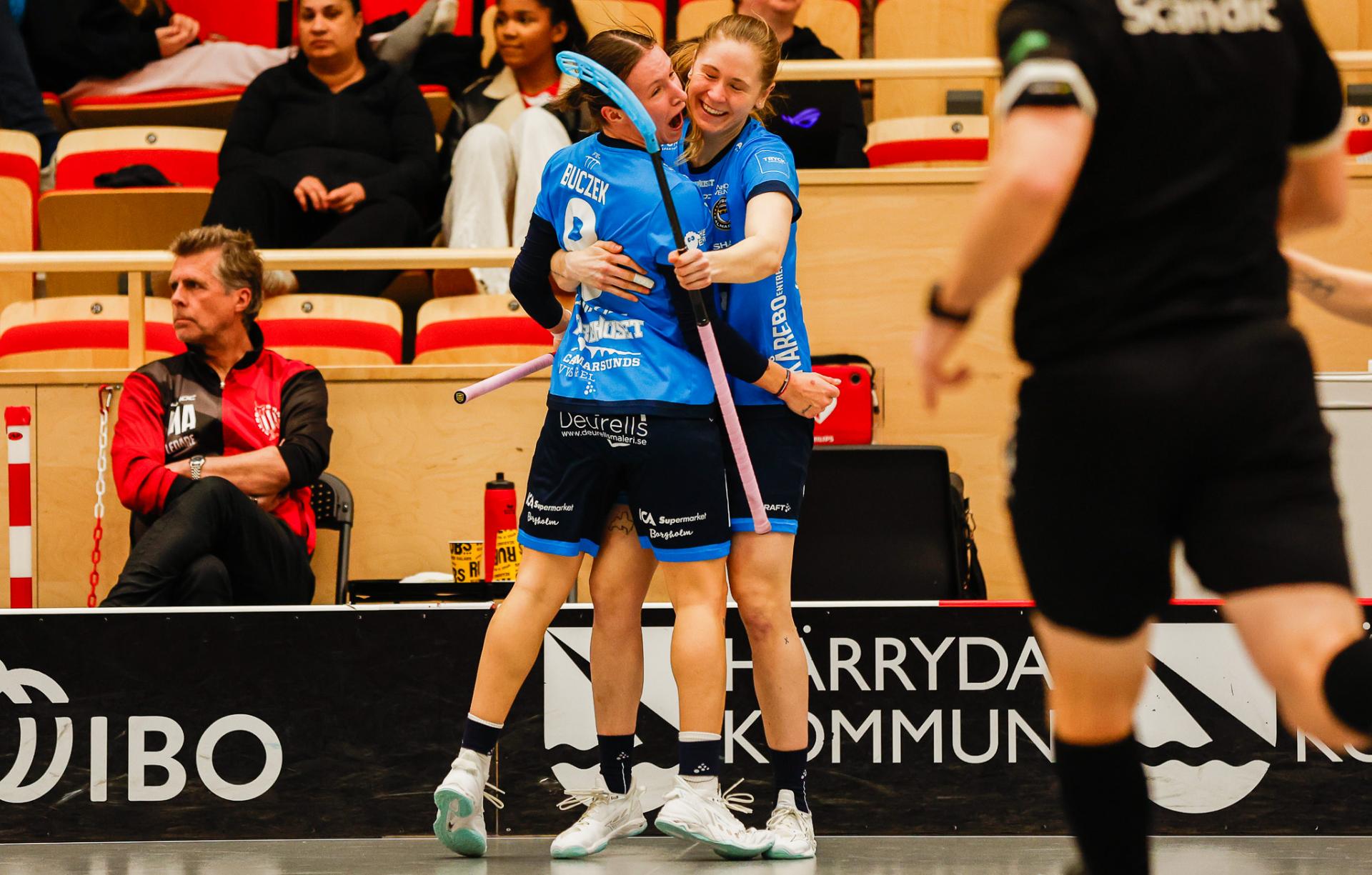 Der er også Pixbo best og Ekholt gjør en ordentlig god redning etter minuttet, men to minutter ut i spilleforlengelsen kontrer Kalmarsund, og Buczek finner Linnéa Eos som smeller ballen i mål, og Kalmarsund jubler for seier i den første semifinalen som spilles best av fem kamper.